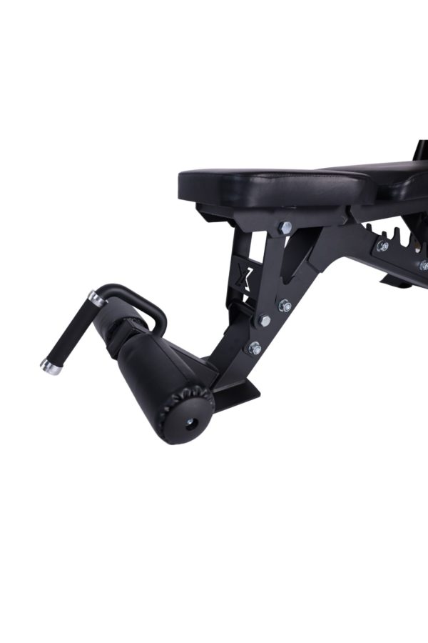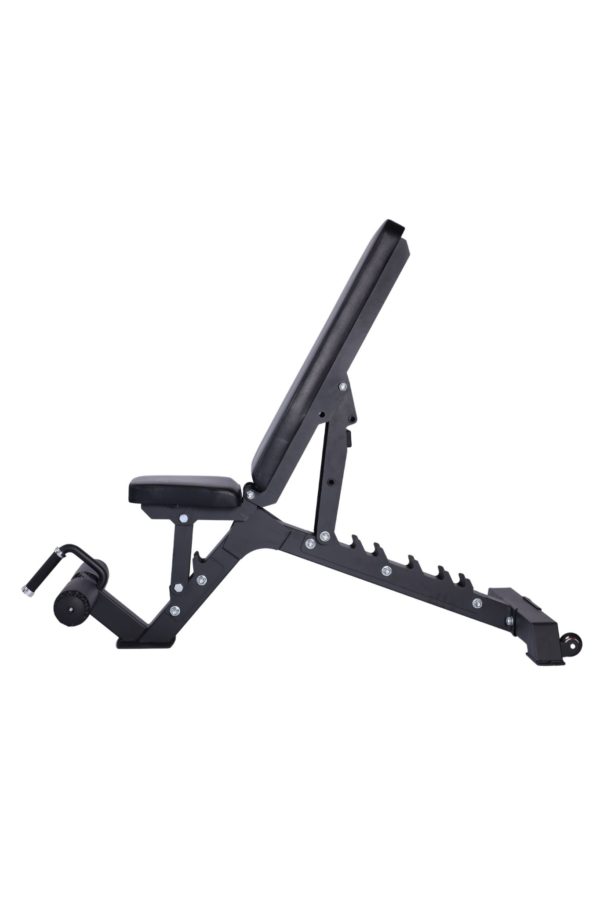 Looking for a bench that has the quality your gym needs without breaking the bank? The Vortex Commercial Adjustable FID bench does just that. Boasting an overall product weight of nearly 100 lbs this bench does it all and can hold 1200 LBS of weight. The bench goes full incline, full decline, and flat. Both the seat cushion and back rest adjust for your perfect positioning. The bench comes with 11 gauge steel and 3×3 tubing on the frame. It has a handle on the bench with wheels to easily move the bench around your space. Perfect for dumbbell workouts, bench pressing, smith machine exercises, at an extremely affordable value. Added to this bench is the leg holder feature so that you can lock in for decline bench or ab work.