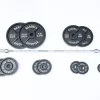 – This set includes a 7-feet Olympic bar, and the following weight plates: 2 x 45 lb, 2 x 35 lb, 2 x 25 lb, 2 x 10 lb, 2x 5 lb and 2 x 2.5 lbs.